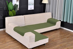 Комплект антискользящих накидок на угл.диван 90х210см(1шт) с оттоманкой 90х160см(1шт) и подлокотниками 50х70см(2шт) Абстракция, цвет зеленый,100% полиэстер, плотность 485гр/м2, ПВХ чемодан
