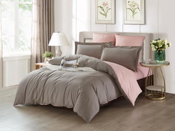 КПБ "KARTEKS" сатин однотонный комбинированный, арт. SK016, р. 2-спальный, (подод.180х215см-1шт на молнии, прост.220х240см-1шт, нав.70х70см-2шт, 50х70+5см-2шт с запахом) состав 100% хлопок,плотность 145 гр. м2, упаковка ПВХ сумка с подарочным пакетом.