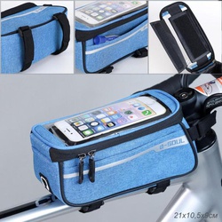 Сумка велосипедная на раму BICYCLE SOUL, с отделением для смартфона 6.0", основной отсек на молнии, голубая, 21x10.5x9см. /уп 50/