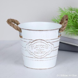 Кашпо ведерко 12 см белое / WK-525 /уп 100/с ручками