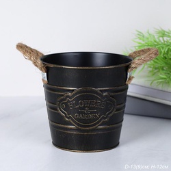 Кашпо ведерко 12 см черное / BK-524 /уп 100/с ручками