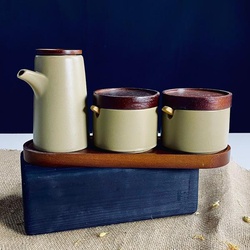 140-162 Набор для специй с сахарницей и бутылки для масла/уксуса 5пр. на под-ке BAMBO в под.уп.(х12)
