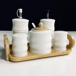 140-158 Набор для специй с сахарницей 300мл на подставке BAMBOO в под.уп.(х24) Фарфор