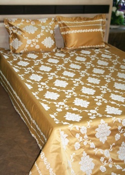 Покрывала Анастасия (золото) (50% ПЭ, 50% Хлопок) 220*250 см -1 шт, чехлы на подушку двустронние с "
