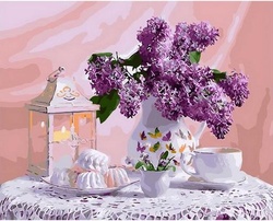 Картина по номерам Натюрморт с сиренью и зефиром 40х50 см