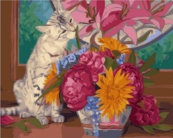 Картина по номерам Букет и кошка 40х50 см