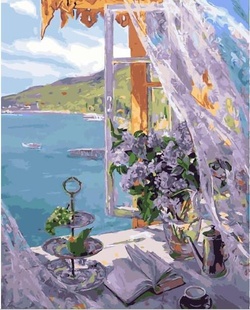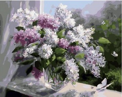 Картина по номерам Букет сирени на окне 40х50 см
