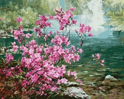 Картина по номерам Цветущий куст у воды 40х50 см