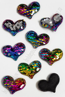 Патч с двухсторон. пайетками "Сердечко" 5*4 см (10 шт) SF-3783, разноцетный