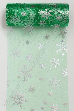 Фатин "Снежинки" 15 см*15 ярд (SF-3776) зеленый/серебро