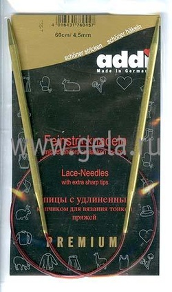 Спицы 60 см 4-5 ADDI позолоченные круговые с удлиненным кончиком для тонкой пряжи