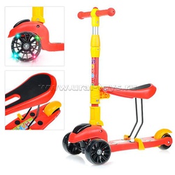 Самокат 3-х кол.,, со светящимися колёсами, разборный, оранжевый, в коробке