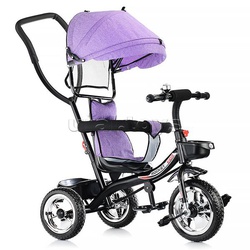 Велосипед 3-х колесный, резиновые колёса, музыкальный руль, фиолетовый