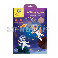 Картон цветной А4 8 л. 8 цв. перламутровый в папке Енот в космосе Мульти-Пульти КЦп8-8_44861