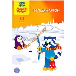 Картон белый немелованный А4 10 л. в папке Чебурашка Мульти-Пульти КБ10_53131