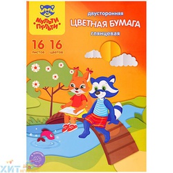 Цветная бумага двустор. A4 16 л. 16 цв. мелованная в папке Мульти-Пульти ЦБм16-16дв_31612