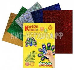 Картон цветной голографический А4 5 л. 5 цв. лам/метал. в папке Каляка-Маляка КФГКМ05