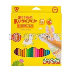 Карандаши цветные 24 шт 3-гран. стираемые с ластиком пластик Каляка-Маляка ККМП24