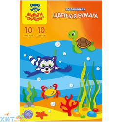 Цветная бумага A4 10 л. 10 цв. мелованная в папке Мульти-Пульти БЦм10-10_13972