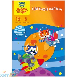 Картон цветной A4 16 л. 8 цв. немелованный в папке Мульти-Пульти КЦнм8-16_13978