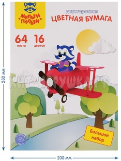 Цветная бумага газетная А4 двустор. 64 л. 16 цв. на склейке Енот в России Мульти-Пульти БЦг64-16дв_38556