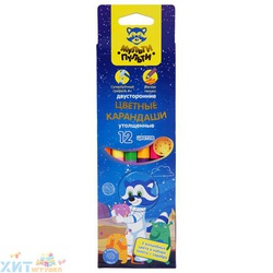 Карандаши цветные 12 цв. 6 шт. двусторонние утолщенные заточен. Енот в космосе Мульти-Пульти CP_33721