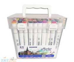 Маркеры для скетчинга 60 цв. двусторонние в пластиковом кейсе MKB-060