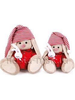 Зайка ми в колпачке с зеленым бантиком 22 см