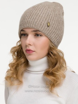 АН034 Шапка жен. Ламбер (светло-бежевый) оптом