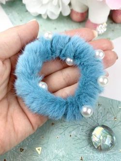 Резинка для волос "Пушистое счастье". Голубая. 1 шт.