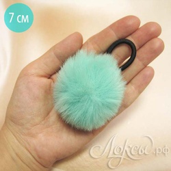 Резинка для волос "Меховой шарик". Светло-бирюзовый.