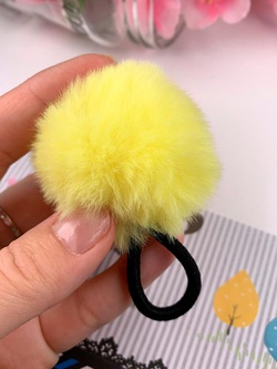 Резинка для волос "Меховой шарик". Лимонная. 1 шт.