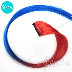 Цветные пряди волос на заколках. Красный + Синий электрик 1 шт.