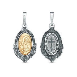 Подвеска из чернёного серебра с золочением и фианитами - Святая блаженная Матрона, Молитва святому П-008чзММ