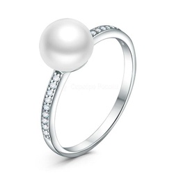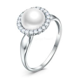 Кольцо из серебра с культивированным жемчугом и фианитами родированное К50222