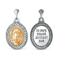 Подвеска православная из чернёного серебра с позолотой - Казанская Божья Матерь (По вере вашей да будет вам) П-042чзКБМ