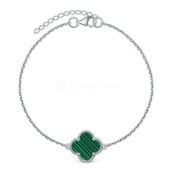 Браслет из серебра с малахитом родированный - Клевер, четырёхлистник 251-10-151-3р