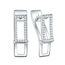 Серьги-пусеты из серебра с фианитами родированные - Вееры С-4726-Р