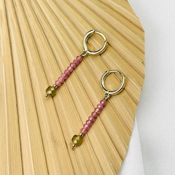 Серьги двойные из мадагаскарского Розового кварца и Кунцита