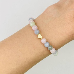 Браслет детский из Кварца микс и Берилла со вставкой "Сердце"