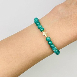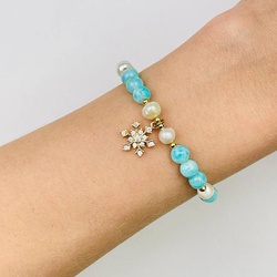Браслет из Амазонита и Жемчуга с подвеской "снежинка"