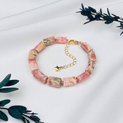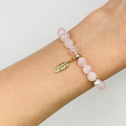 Браслет из мадагаскарского Розового кварца и Жемчуга с подвеской "Перо"