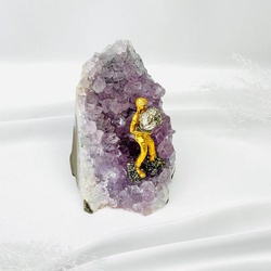 Фигурка Старатель с Пиритом на жеоде из Аметиста