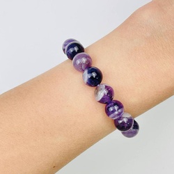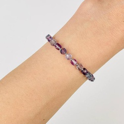 Браслет из Аметиста и Розового кварца с подвеской "Перо"