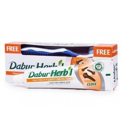 Зубная паста с гвоздикой DABUR HERB'L Toothpaste CLOVE (укрепляющая, защита от кариеса) 150 г + зубная щётка средней жесткости