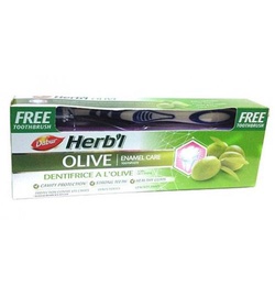 Паста зубная DABUR HERB'L OLIVE (очищение и укрепление эмали) 150 г + зубная щётка средней жесткости