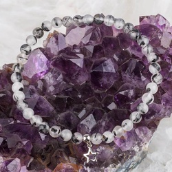 Браслет детский из Розового кварца и Аквамарина со вставкой "Цветок"