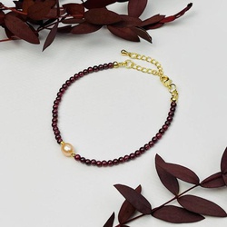Браслет из Граната с перламутровой вставкой "Сердце"