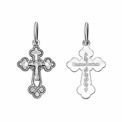 Кольцо (Спаси и Сохрани) из серебра ч/ч литьё с фианитом