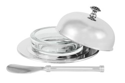 Масленка, 14х7 см, с ножом, стекло/сталь, круглая, Brittany